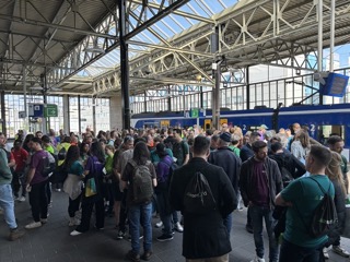 De 23 Poolse collega’s waren weliswaar per vliegtuig naar Nederland gekomen, maar de reis begon vrijdagochtend op station Eindhoven waar iedereen zich had verzameld. “Vooraf hadden we een paklijst, een backpack, een t-shirt en een treinticket voor de Interfood Express naar Leeuwarden uitgereikt. Maar de volledig aangeklede en bestickerde chartertrein uit Duitsland overtrof ieders verwachtingen. Rookmachines zorgden voor rook uit de ramen. De mensen op het perron wisten niet wat ze zagen. Er waren drie wagons: eentje met heerlijke catering, een partycoupé en – omdat we een 24/7 bedrijf zijn met logistieke uitdagingen – ook een werkcoupé. Een goede combinatie met ruimte voor iedereen. De partycoupé was wel het drukst bezocht tijdens de drie uur durende reis. Mensen konden meedoen met een muziekbingo onder de bezielende leiding van een geweldige drag queen.”